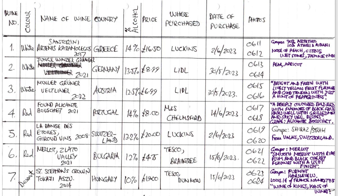 The other white wines we tasted were:-